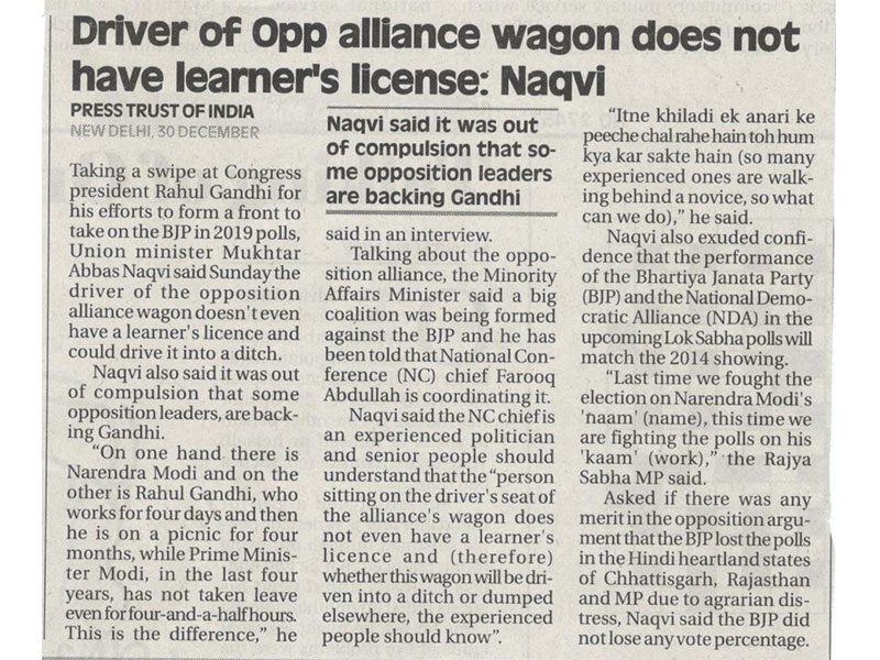 Interview with Press Trust of India